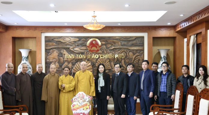 Sáng ngày 16-1, chư tôn đức HĐTS GHPGVN đã đến thăm, chúc Tết lãnh đạo ban Tôn giáo Chính phủ (đường Dương Đình Nghệ, phường Yên Hòa, quận Cầu Giấy, Hà Nội).