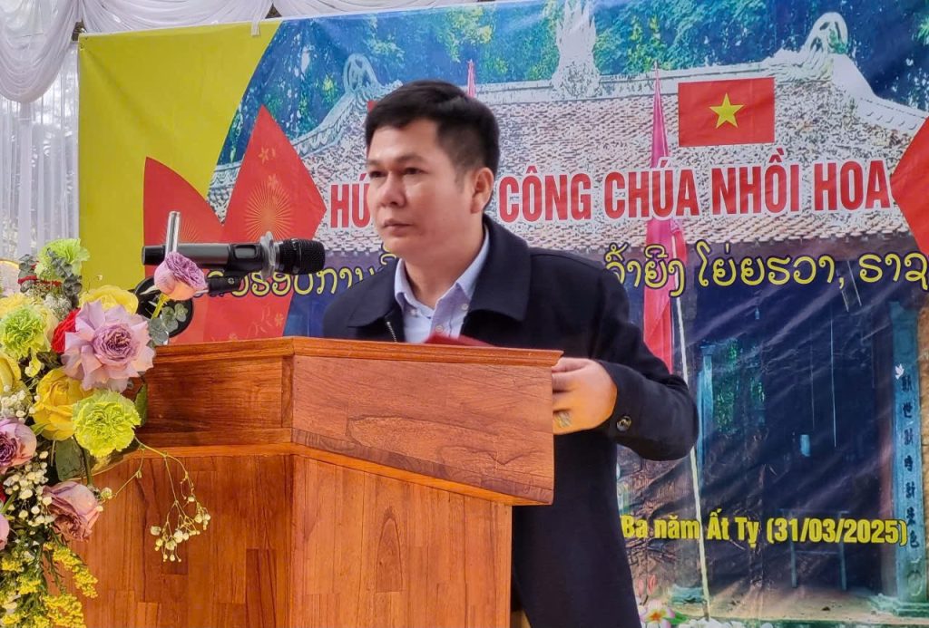 Nhân dịp này bà Khăm – Phâu Ân – Thạ – Văn, Đại sứ đặc mệnh toàn quyền nước CHDCND Lào tại Việt Nam thay mặt cho Đại sứ quán Lào tại Việt Nam, phát biểu bày tỏ vinh dự, tự hào và phấn khởi được tham dự Lễ húy nhật nàng Nhồi Hoa Công chúa cùng chính quyền và nhân dân địa phương cũng là dịp, chào đón năm mới Tết cổ truyền Lào Bun Pi Mai.