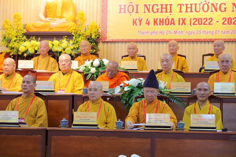 Chủ tọa hội nghị có Trưởng lão Hòa thượng Thích Thiện Nhơn, Phó Pháp chủ Hội đồng Chứng minh, Chủ tịch Hội đồng Trị sự kiêm Trưởng ban Tăng sự T.Ư; cùng nhị vị Trưởng lão Hòa thượng Thích Thiện Pháp, Trưởng lão Hòa thượng Thích Thanh Nhiễu, đồng Ủy viên Thường trực Hội đồng Chứng minh, Phó Chủ tịch Thường trực Hội đồng Trị sự và chư vị Phó Chủ tịch Hội đồng Trị sự; sự tham dự của Ủy viên Thường trực, Ủy viên Hội đồng Trị sự. Ban, Viện T.Ư, Ban Trị sự tỉnh thành.,