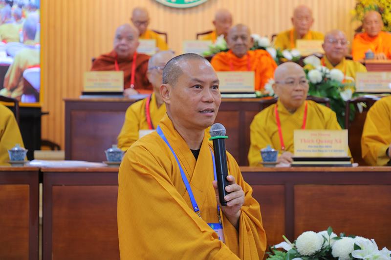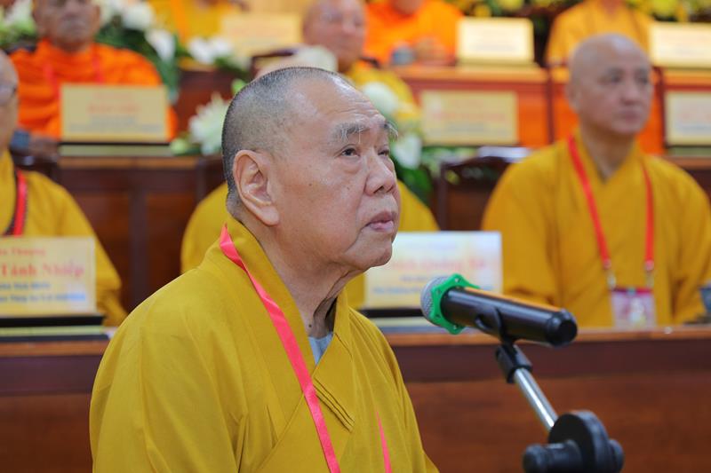 Phát biểu khai mạc Trưởng lão Hòa thượng Thích Thiện Nhơn, Phó Pháp chủ Hội đồng Chứng minh, Chủ tịch Hội đồng Trị sự , điểm qua những công tác Phật sự trọng tâm mà Giáo hội phấn đấu thực hiện hoàn thành trong năm 2024