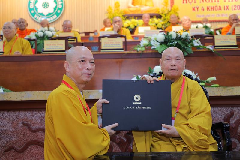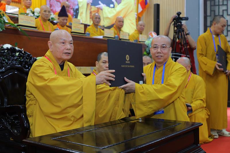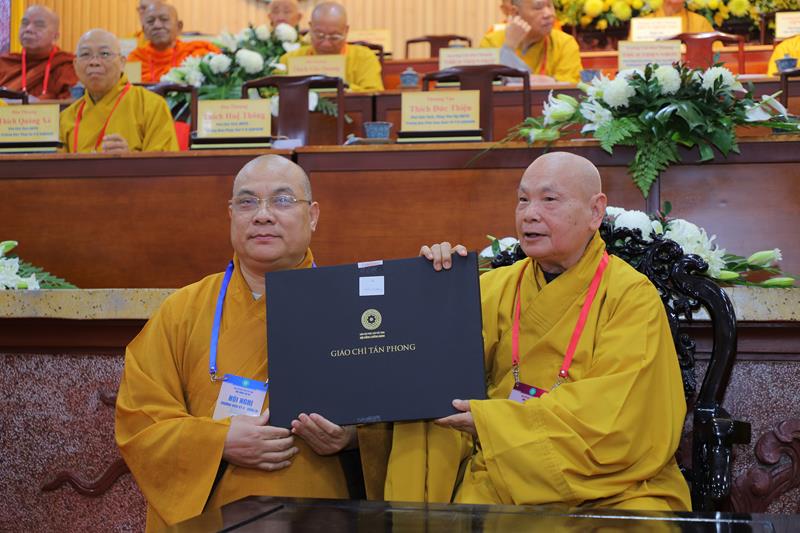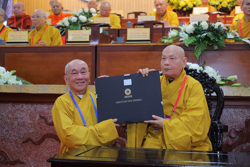 Trưởng lão Hòa thượng Thích Thiện Nhơn, Phó Pháp chủ Hội đồng Chứng minh, Chủ tịch Hội đồng Trị sự điều hành nghi thức suy tôn Trưởng lão Hòa thượng Tăng Nô lên ngôi vị Phó Pháp chủ; suy cử Hòa thượng Thích Lệ Trang đảm nhiệm Phó Chủ tịch Hội đồng Trị sự theo quy định của Hiến chương GHPGVN sửa đổi lần thứ 7 trong không khí trang nghiêm đại hoan hỷ.