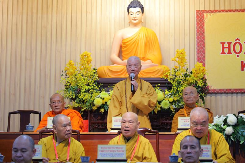 “Trên tinh thần trách nhiệm, trí tuệ tập thể, Ban Thường trực Hội đồng Trị sự rất mong chư tôn đức và quý vị đại biểu tập trung góp ý, đánh giá tổng kết công tác Phật sự của GHPGVN để từ đó tìm ra những nguyên nhân khách quan, chủ quan hạn chế trong các hoạt động Phật sự, để trên cơ sở đó hoàn thiện phương hướng hoạt động Phật sự cho năm 2025, là một năm vô cùng quan trọng phấn đấu hoàn thành các mục tiêu, nhiệm vụ mà Đại hội IX đã đề ra, để Phật giáo Việt Nam tiếp tục phát triển bền vững”,